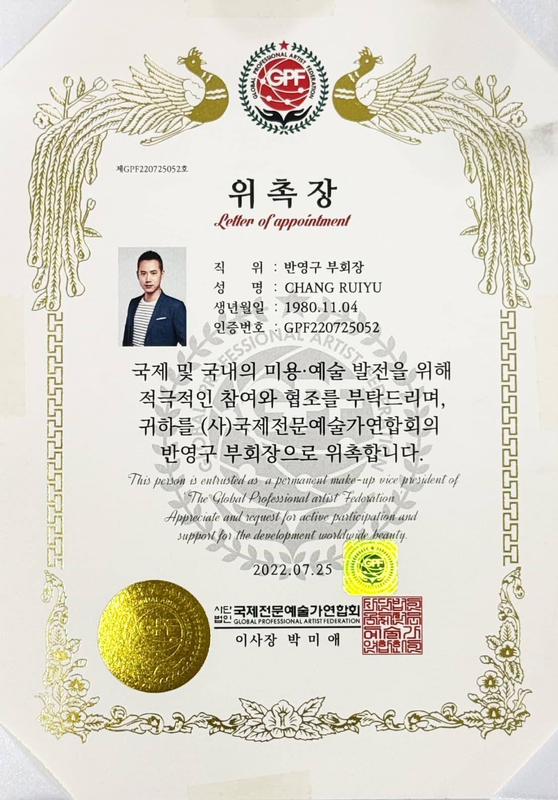 張睿宇老師取得韓國協會「副會長」認證資格,不僅需要多年業界經驗,還必須同時具備教學能量、學生累積數量與服務案例的多重門檻。