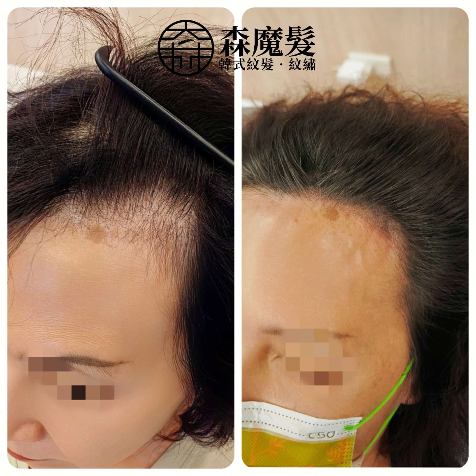 真實案例呈現,改善髮際線不對稱與稀疏,臉型比例更柔和。